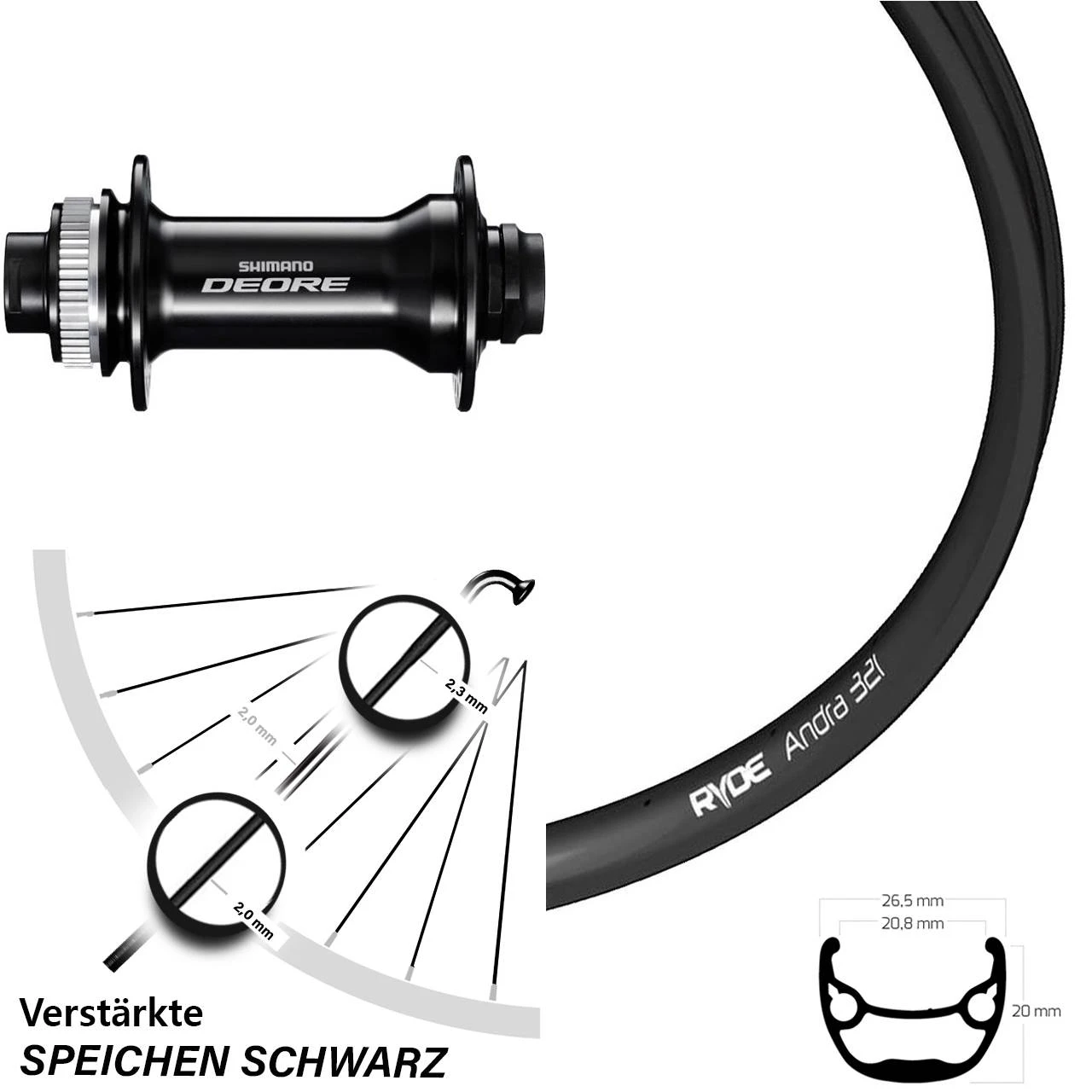 - Ryde Andra 321 Vorderrad 27,5 Zoll mit Shimano Deore HB-M6010 Nabe