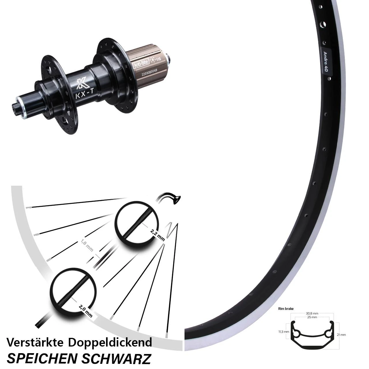 Technische Daten Hinterrad Ryde Andra 40 Felgenbremse schwarz und Nabe KX-T Hinterradnabe 5/135 Felgenbremse schwarz