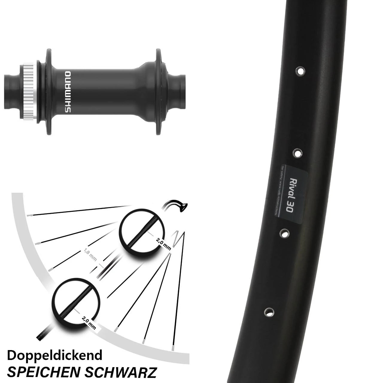 Technische Daten Vorderrad Ryde Rival 30 Disc schwarz mit Nabe Shimano HB-MT410-B schwarz