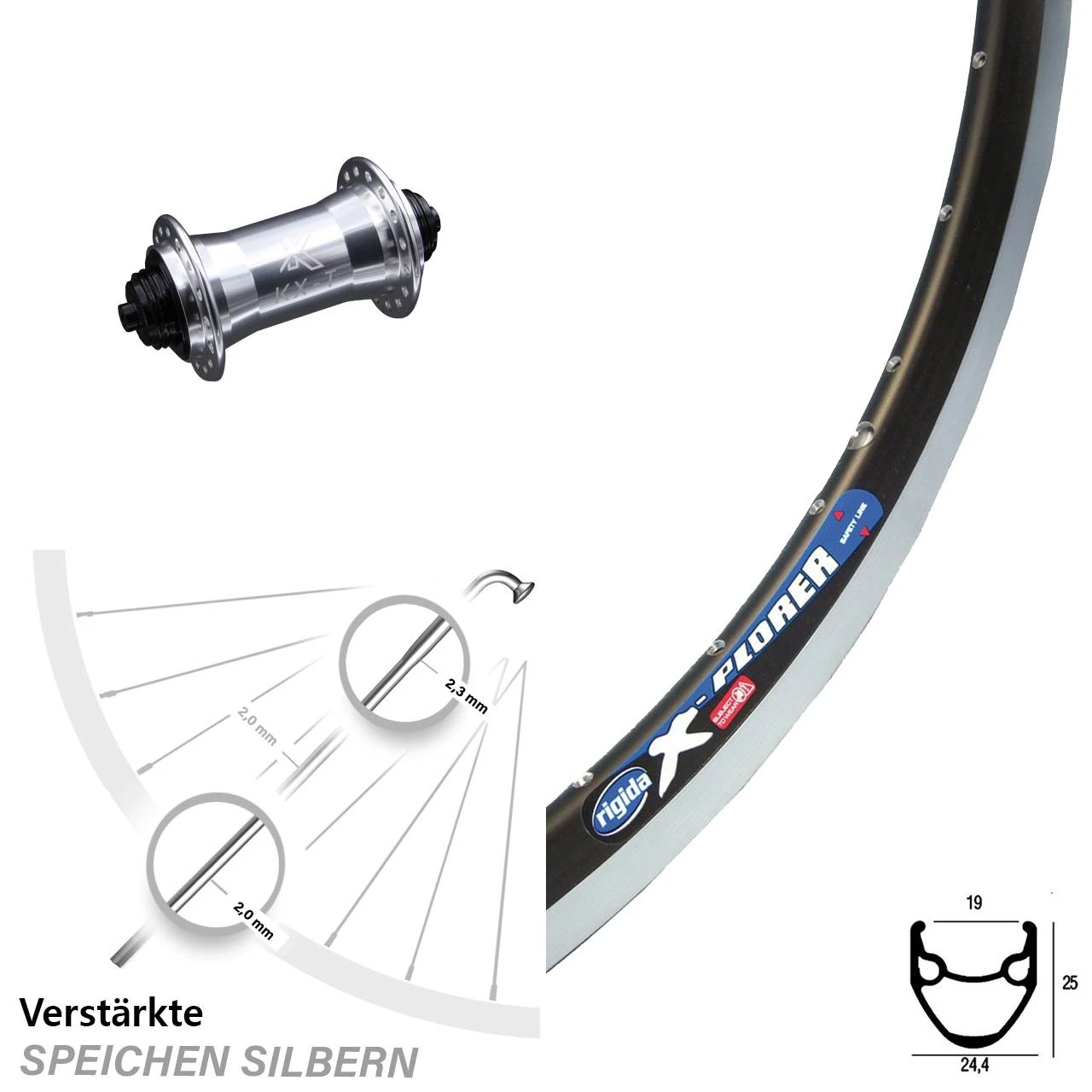 Technische Daten Vorderrad Ryde X-Plorer schwarz mit Nabe KX-T Vorderradnabe 5/100 Felgenbremse silbern