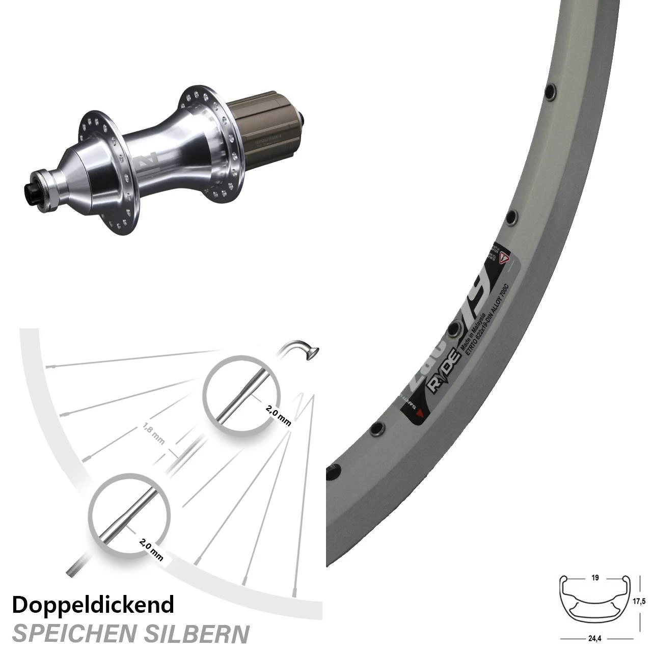 Technische Daten Hinterrad Ryde ZAC 19 Felgenbremse silbern und Nabe Novatec F162SB 5/135 silbern