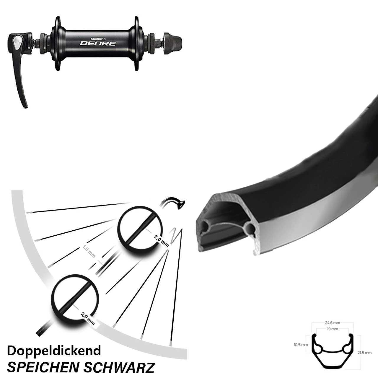 Technische Daten Vorderrad Ryde ZAC 2000 Felgenbremse schwarz mit Nabe Shimano Deore HB-T610 schwarz
