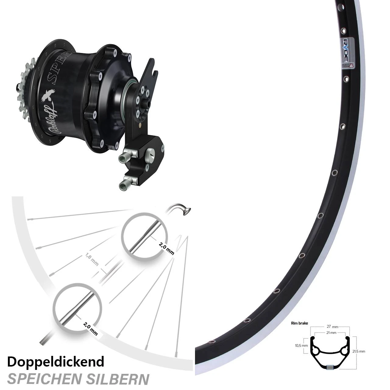 Technische Daten Hinterrad Ryde ZAC 421 Felgenbremse schwarz und Nabe Rohloff Speedhub 500/14 CC EX OEM2 schwarz