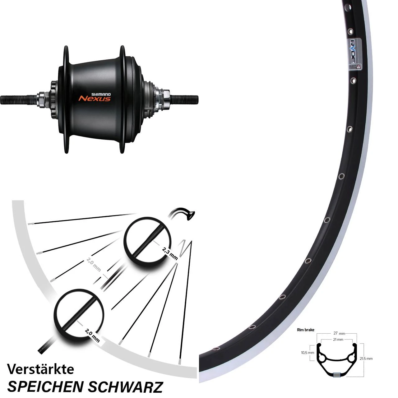 Ryde Zac 421 Hinterrad 28 Zoll Shimano Nexus 7 Gang Freilauf mit verstärkten Speichen