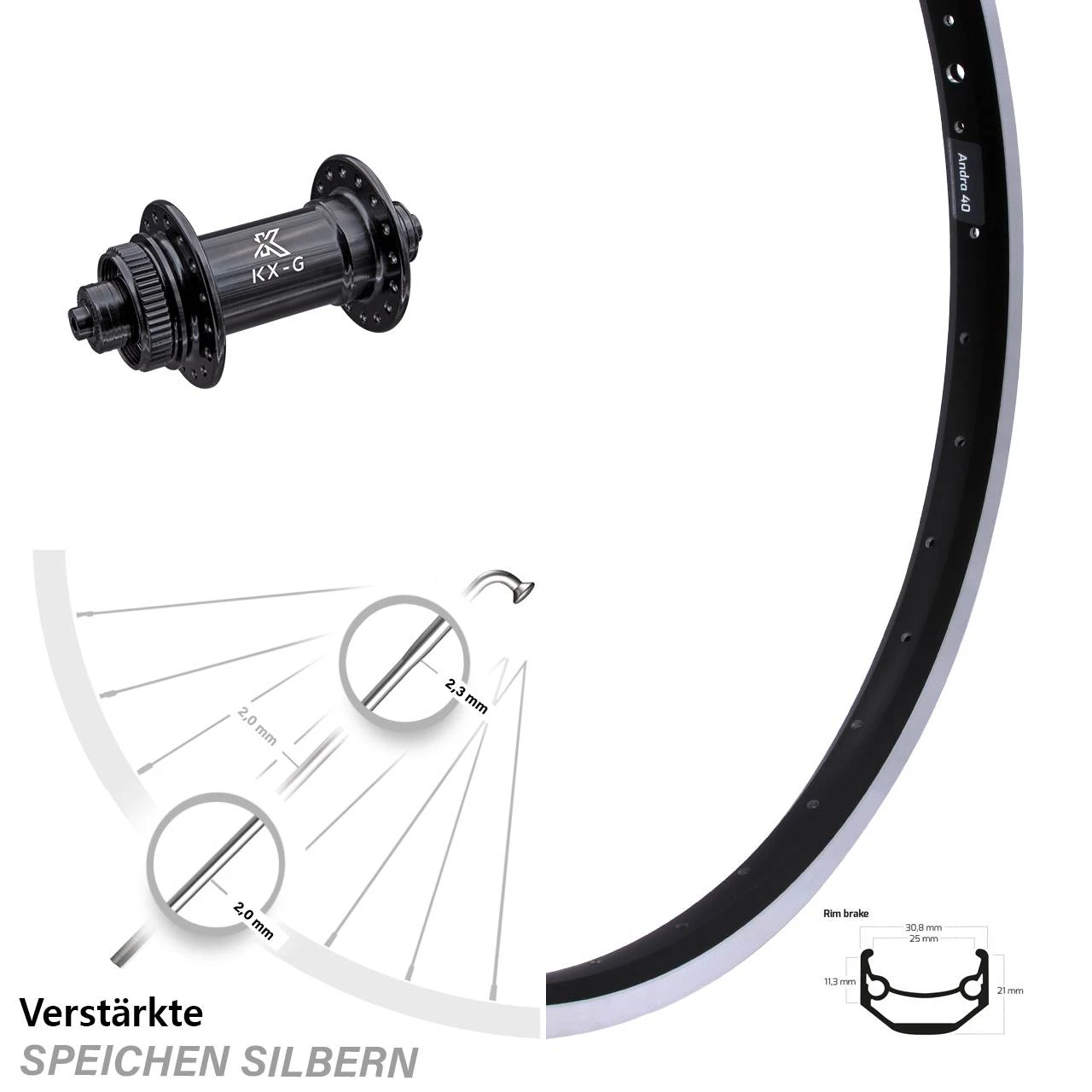 Technische Daten Vorderrad Ryde Andra 40 Felgenbremse schwarz mit Nabe KX-G Vorderradnabe 5/100 Centerlock