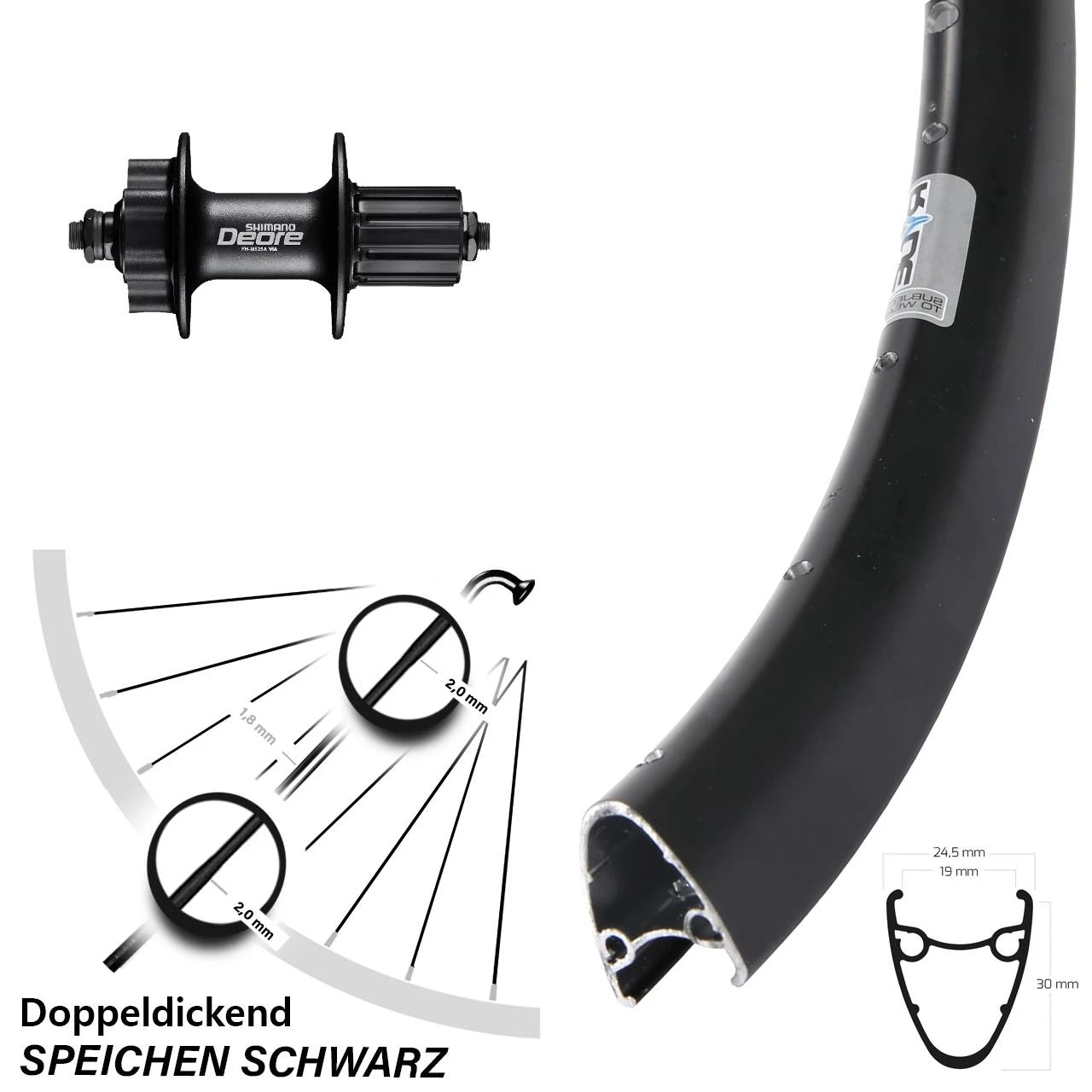 Shimano Deore FH-M525A Ryde Dutch 19 Hinterrad 28-29 Zoll für 6-Loch mit Doppeldickendspeichen