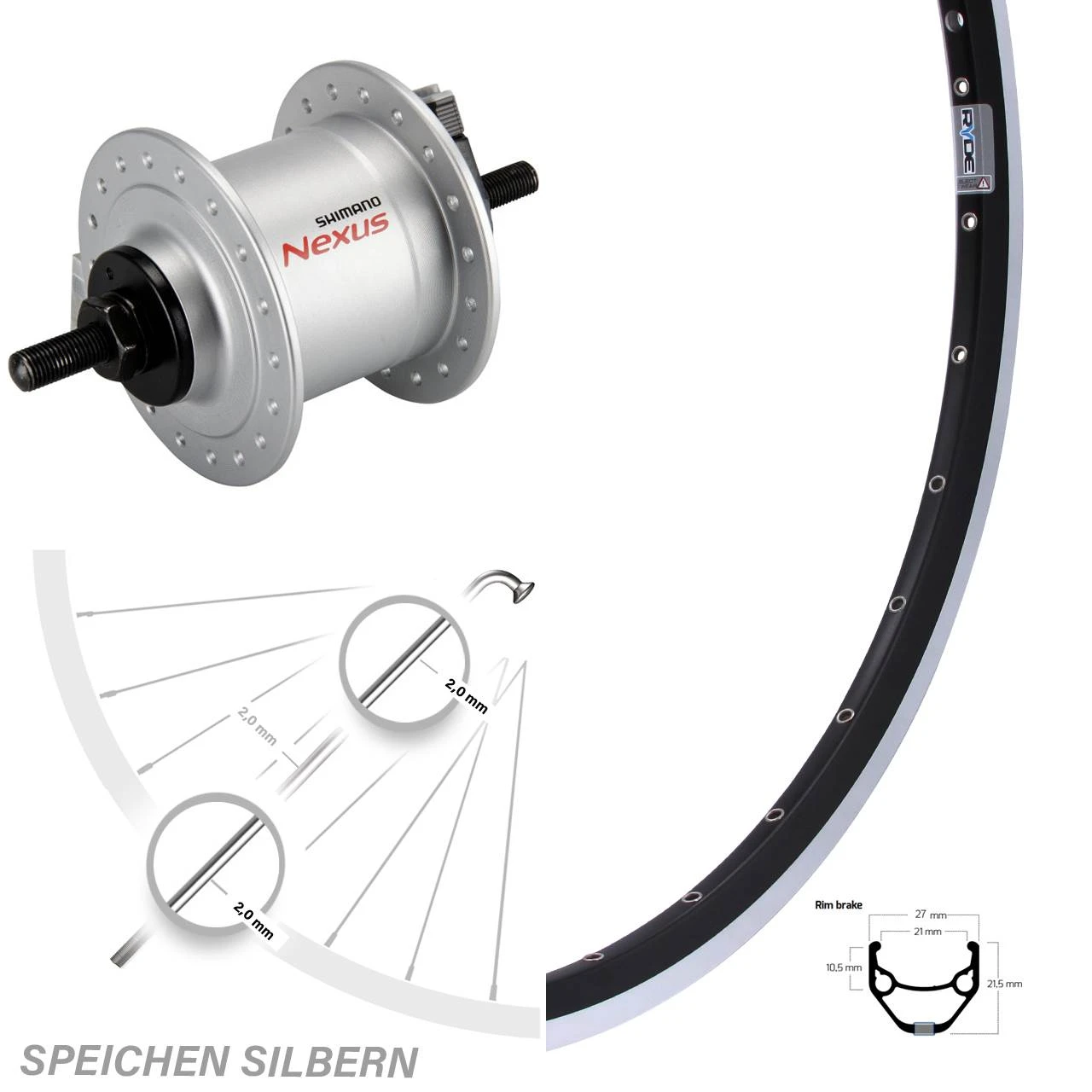 Technische Daten vorderes Laufrad Ryde ZAC 421 Felgenbremse schwarz & Nabendynamo Shimano DH-C3000-1N silbern Mutterntyp