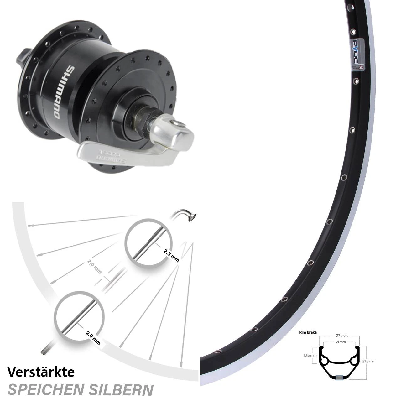 Technische Daten vorderes Laufrad Ryde ZAC 421 Felgenbremse schwarz & Nabendynamo Shimano DH-3N72 schwarz