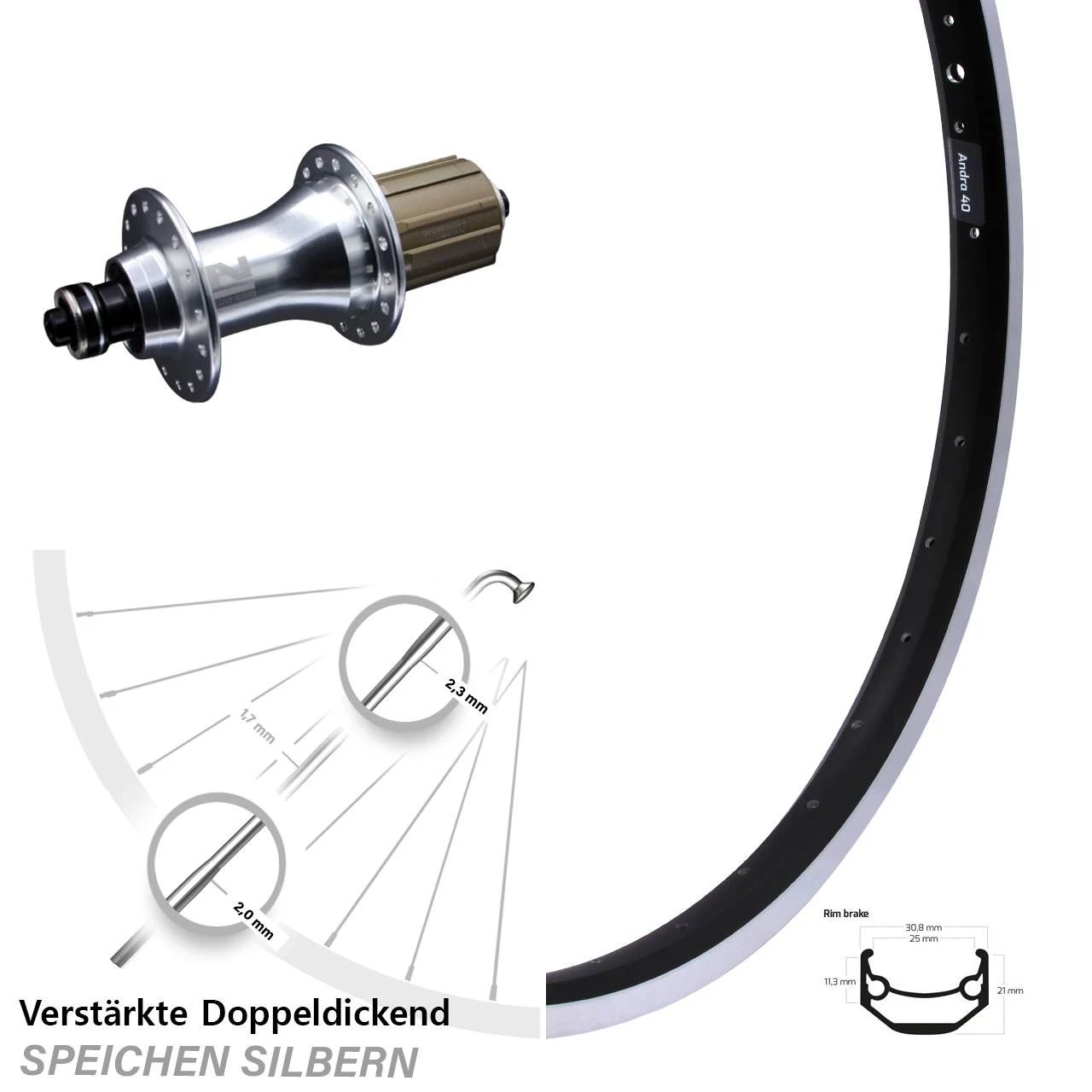 Technische Daten Hinterrad Ryde Andra 40 Felgenbremse schwarz und Nabe Novatec F162SB 5/130 silbern