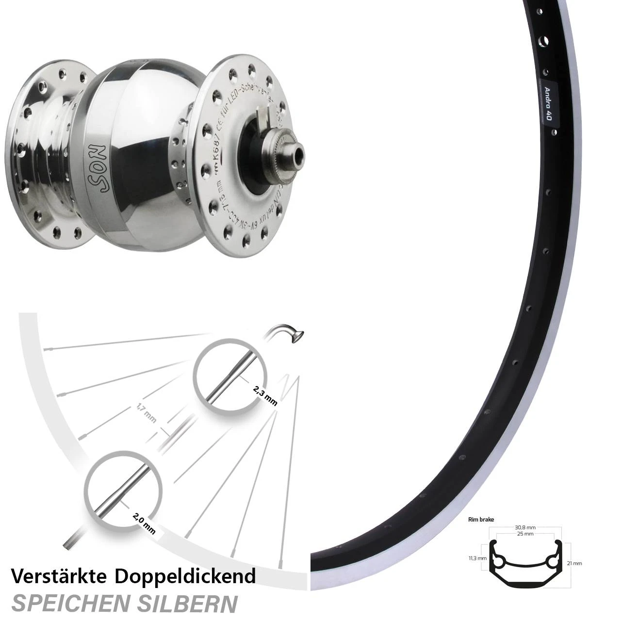 Produktbeschreibung Vorderes Rad mit Nabendynamo SON delux Wide Body Ryde Andra 40 28 Zoll