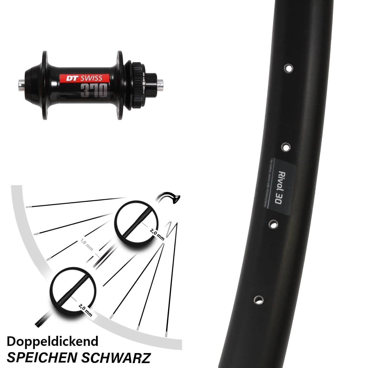 Technische Daten Vorderrad Ryde Rival 30 Disc schwarz mit Nabe DT Swiss 370 Centerlock 5/100