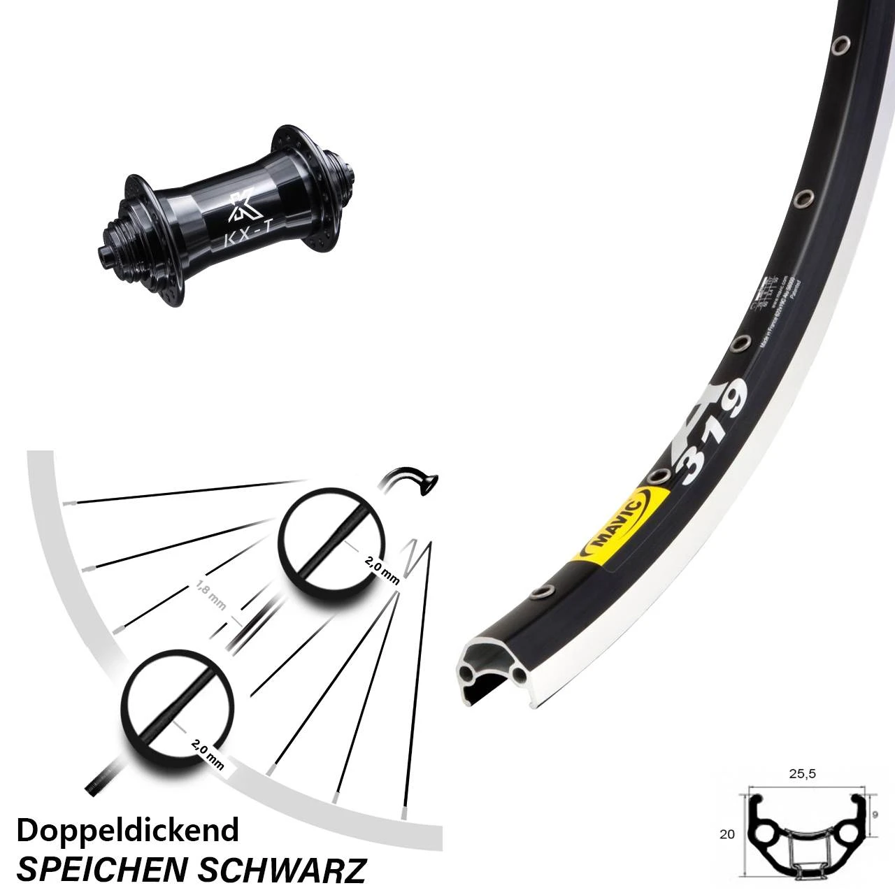 Technische Daten Vorderrad Mavic A 319 schwarz mit Nabe KX-T Vorderradnabe 5/100 Felgenbremse schwarz
