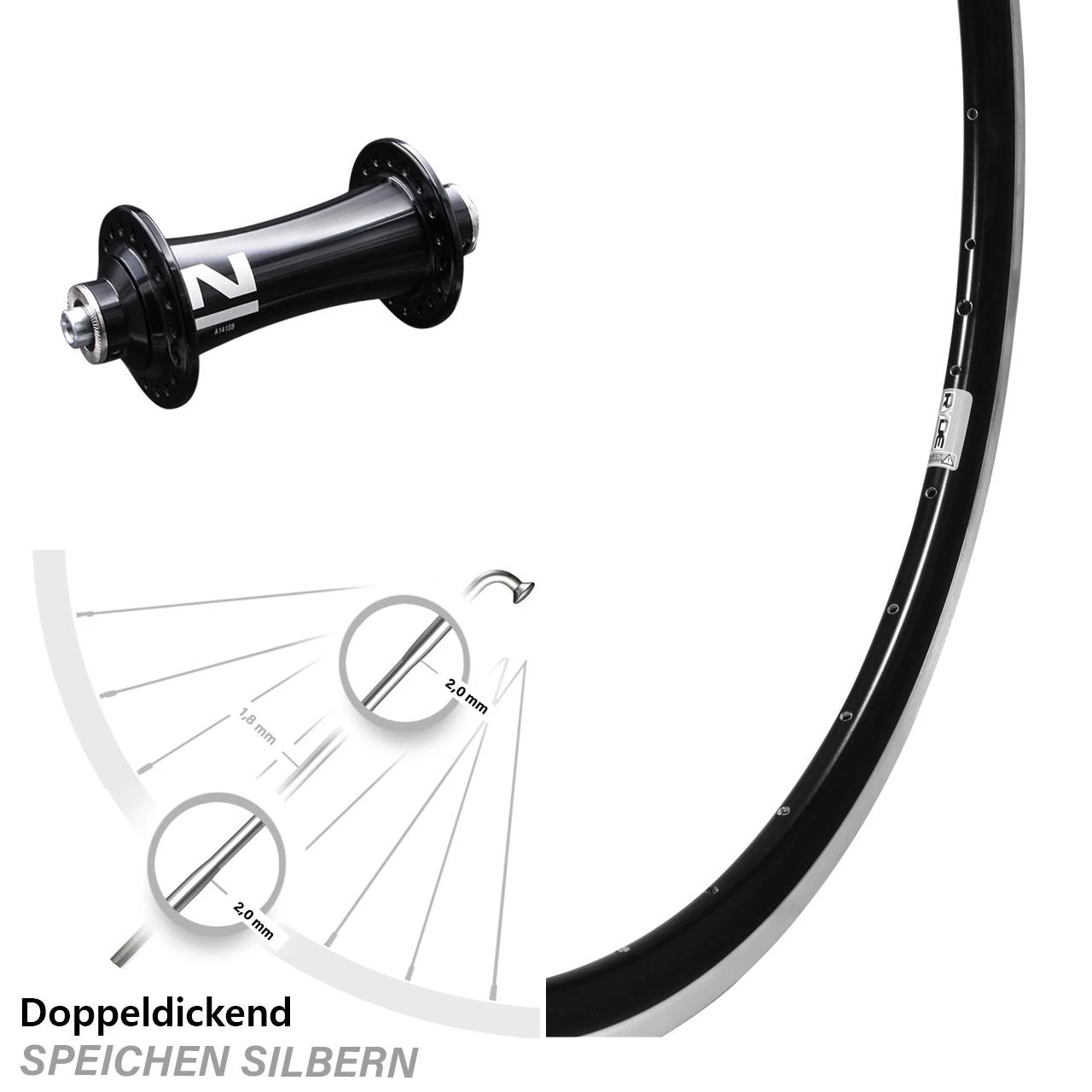 Technische Daten Vorderrad Ryde Dutch 19 Felgenbremse schwarz mit Nabe Novatec A141SB schwarz