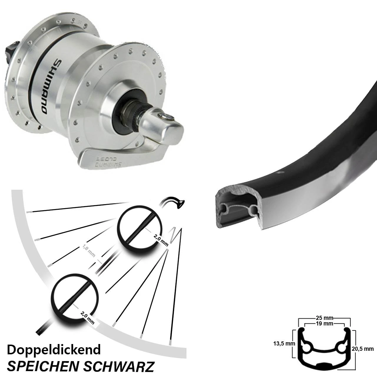 - Nabendynamo: Shimano DH-3N72 silbern – besonders leichtläufig