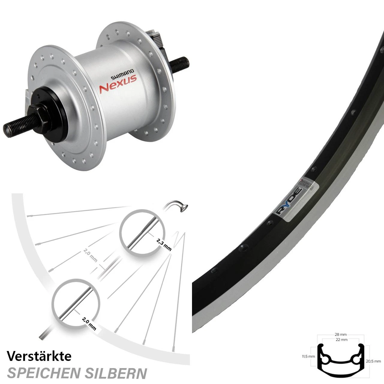 - Vorderrad 26 Zoll Ryde Andra 35 schwarz mit Nabendynamo Shimano Nexus DH-C3000-1N silbern