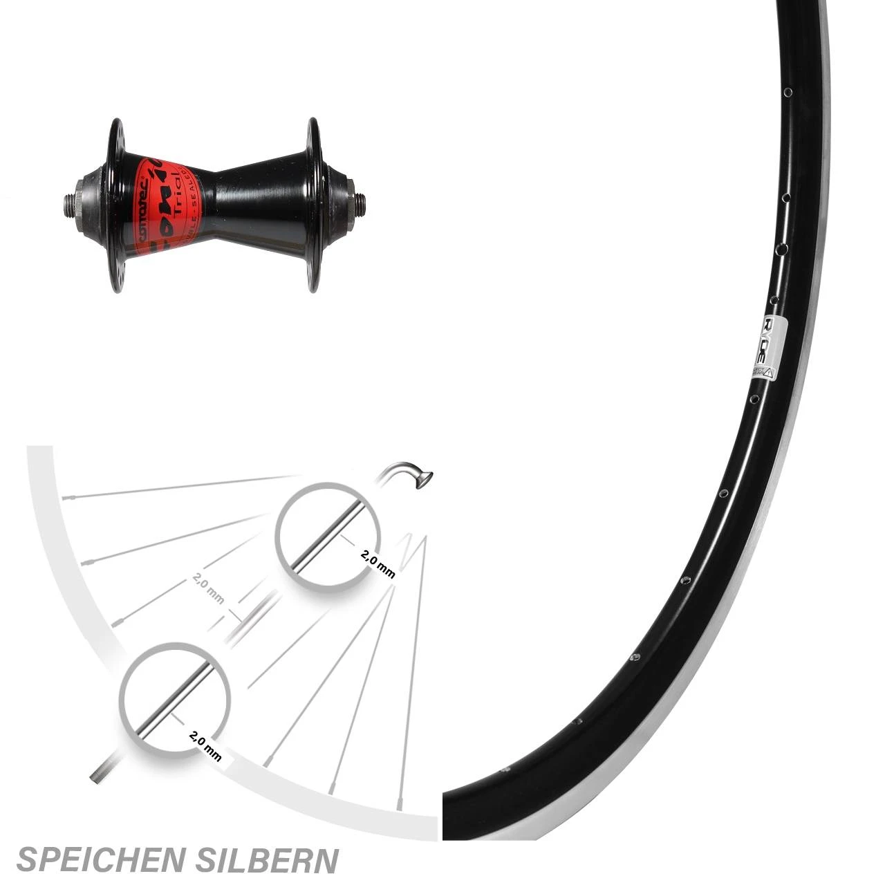 Technische Daten Vorderrad Ryde Dutch 19 Felgenbremse schwarz mit Nabe Formula Conic schwarz