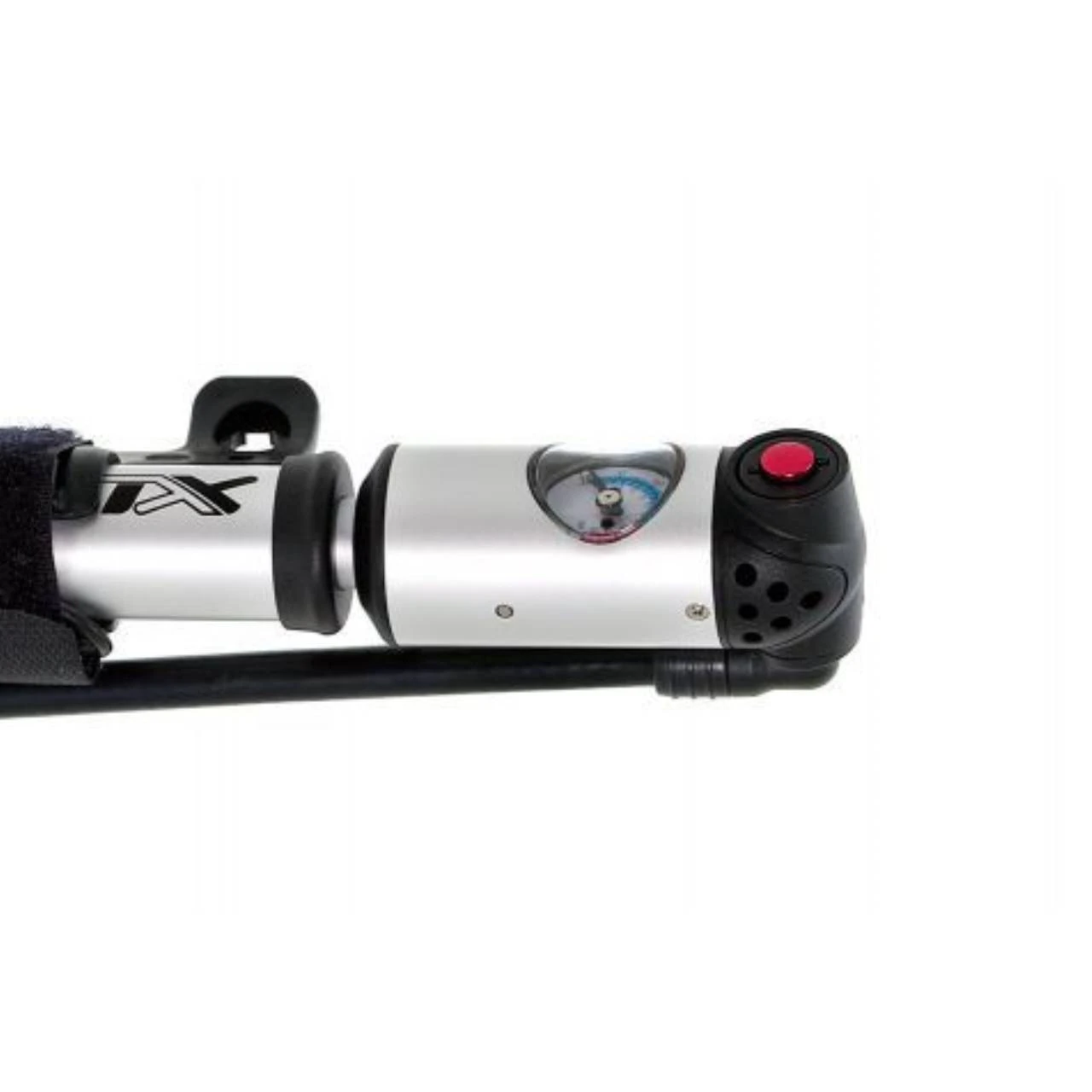 Diese Minipumpe ist aus hochwertigem Aluminium gefertigt. Der Pumpenschlauch für AV und SV-Ventile lässt eine bequeme Handhabung auch an unzugänglichen Fahrradpositionen (Hinterraddämpfer) zu. Dank des 2-Wege Pumpsystems produzieren Sie sowohl bei der Pump-, als auch bei der Ziehbewegung bis zu 7 bar Pumpendruck. Ein Manometer zeigt Ihnen, wenn der erwünschte Reifendruck erreicht ist und Mithilfe der Auslösetaste ist eine präzise Druckeinstellung möglich. Das Verstellrädchen am Pumpengehäuse ermöglicht wahlweises Pumpem mit erhöhtem Druck oder erhöhtem Volumen.
